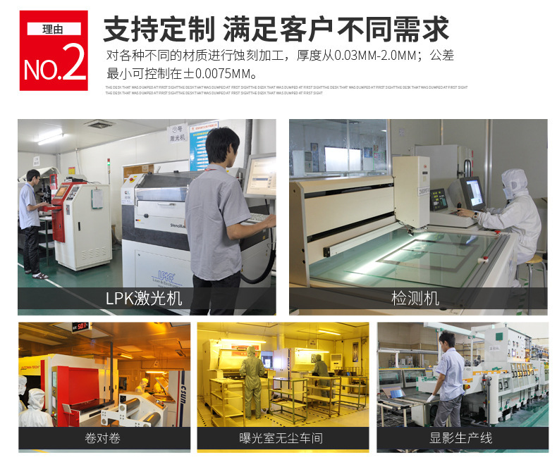 | 蝕刻加工能力: | 卷對(duì)卷曝光機(jī)可大批量生產(chǎn),每天生產(chǎn)高達(dá)1000平方米 |